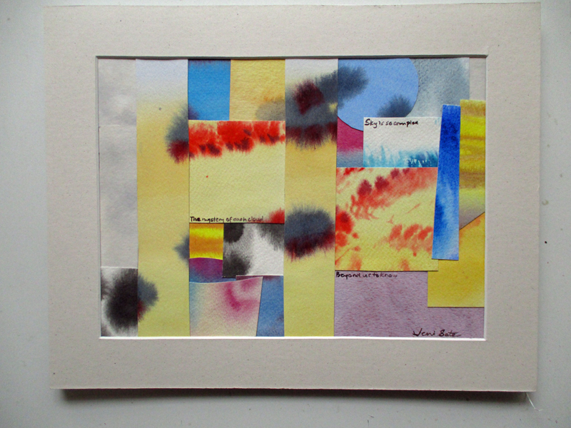 #1570 "Complex" 7.5x10.5" Watercolor collage in mat, frames to 11x14". $95.